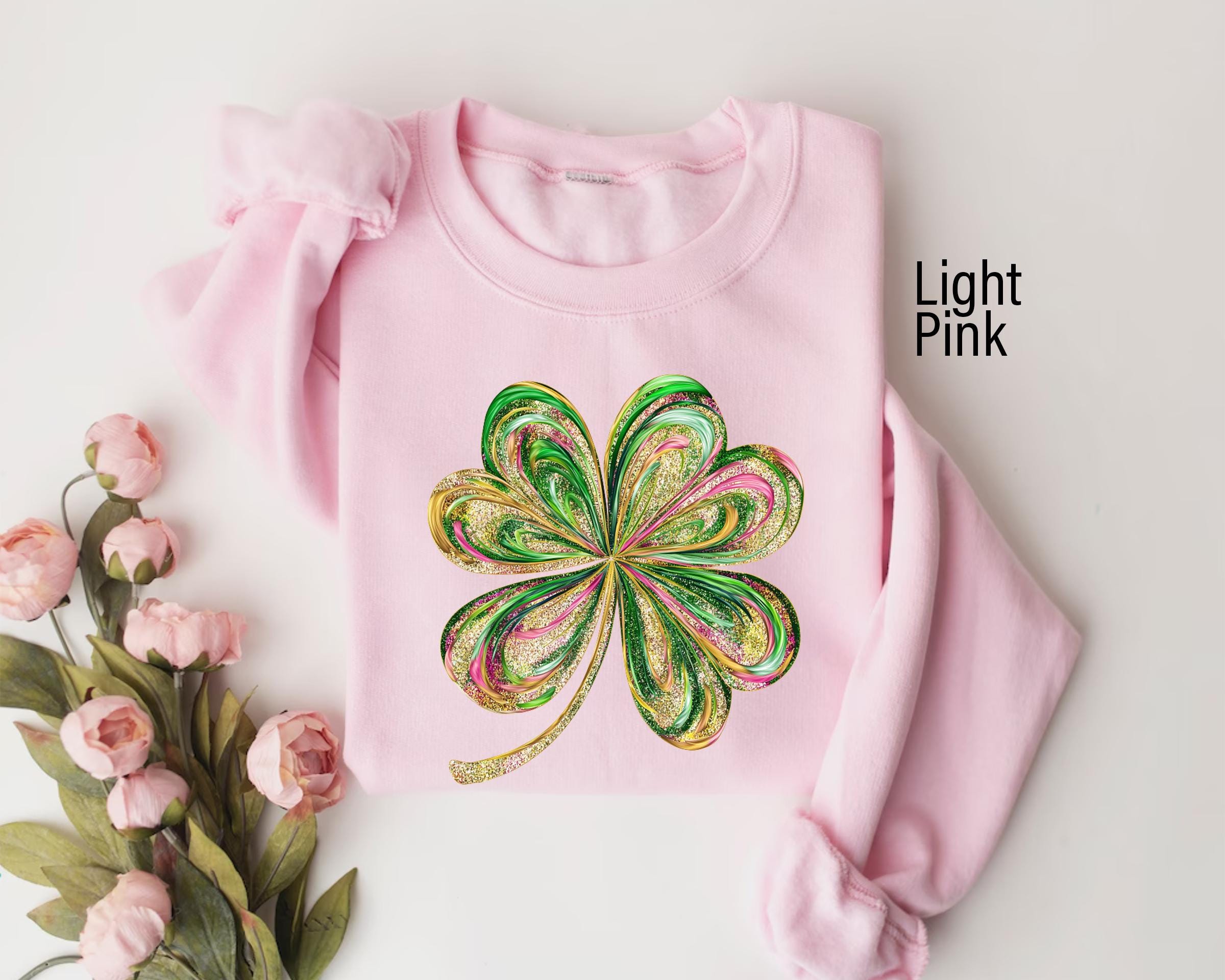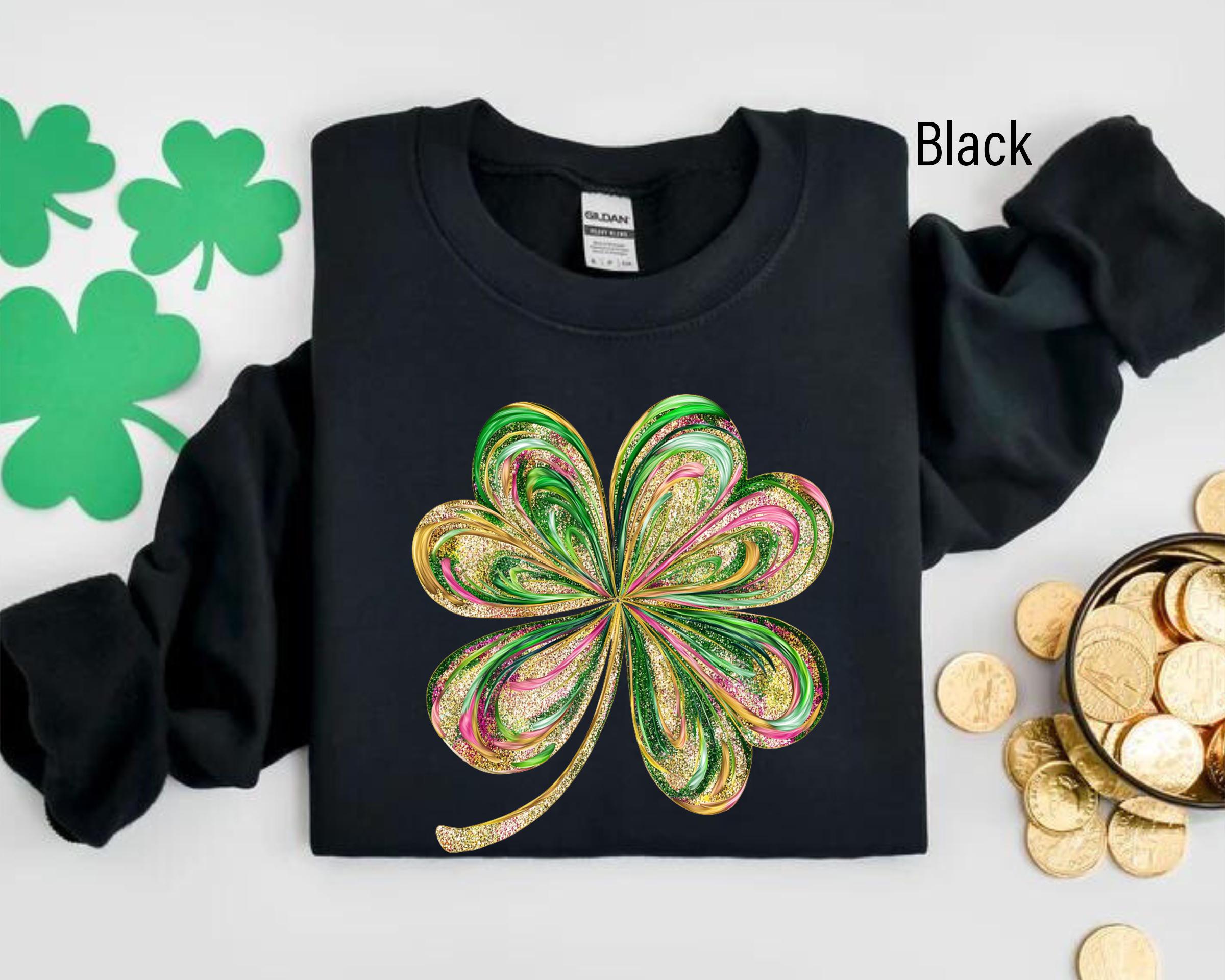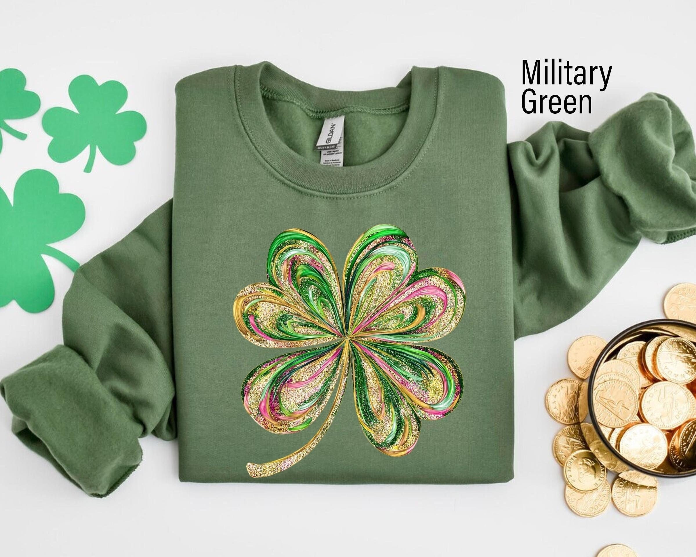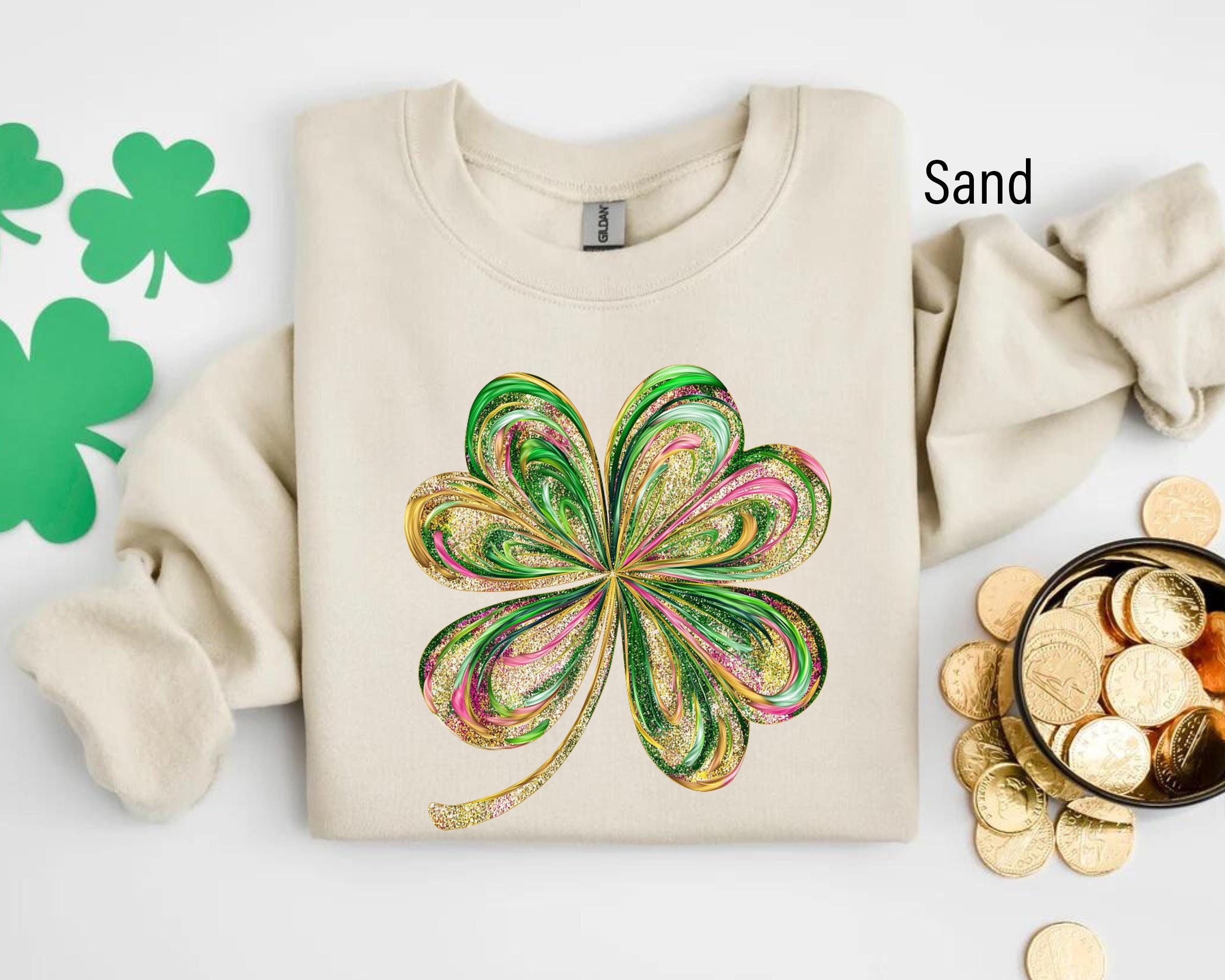 Retro Shamrock Sweatshirt, Womens Glitter Sweatshirt, Cute St Patricks Day Sweatshirt, Lucky Sweatshirt, Irish Shirt, Four Leaf Clover