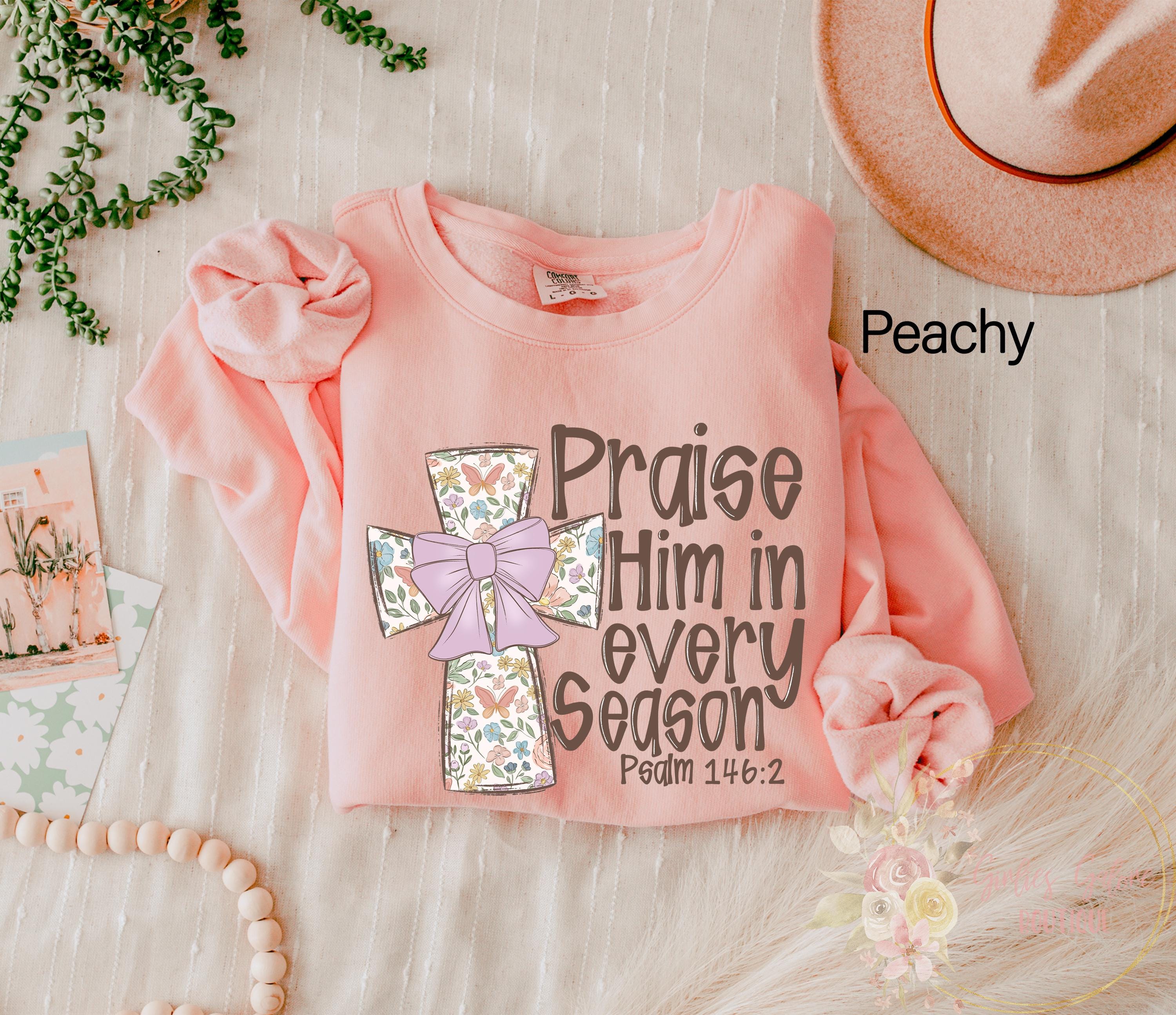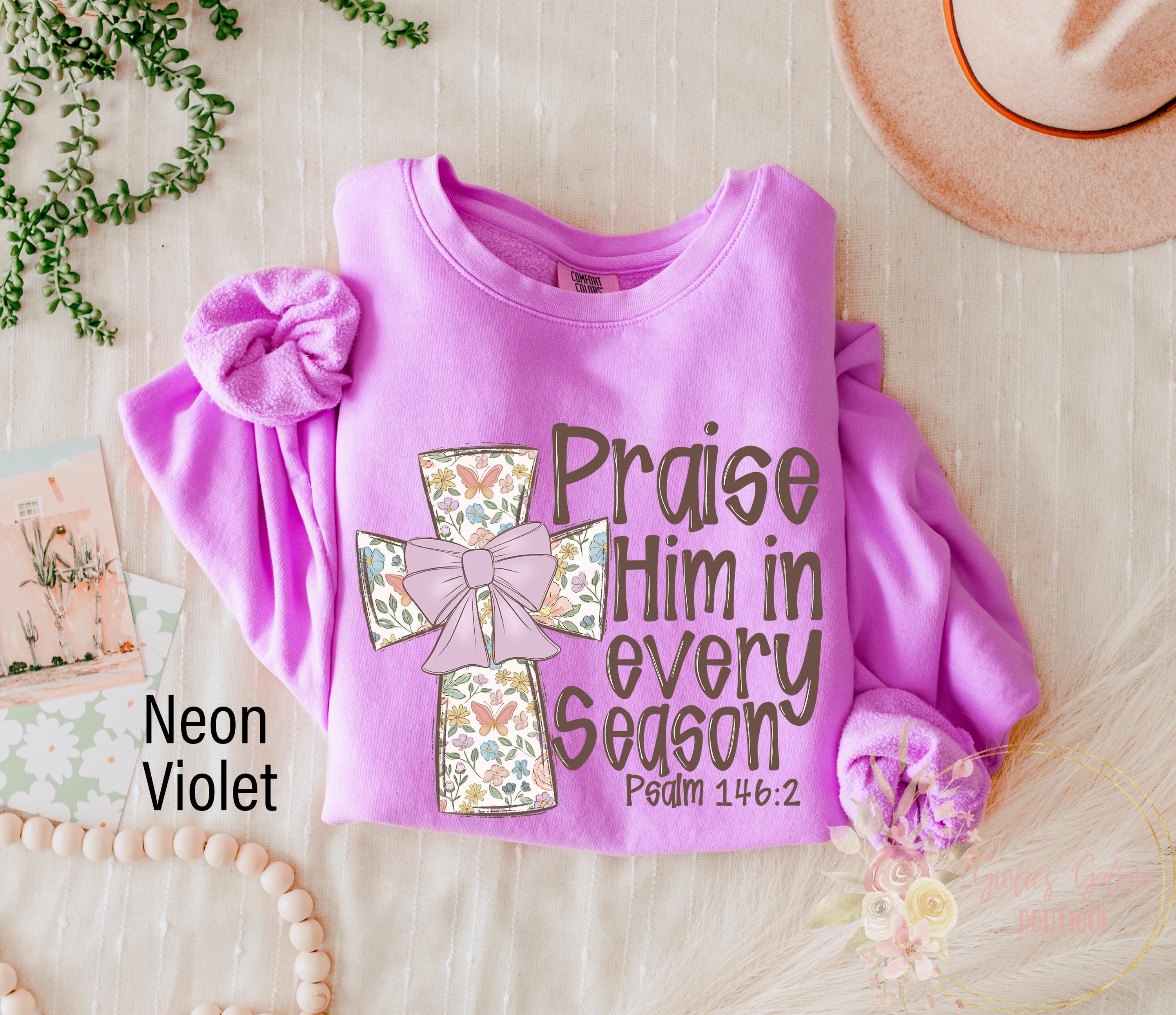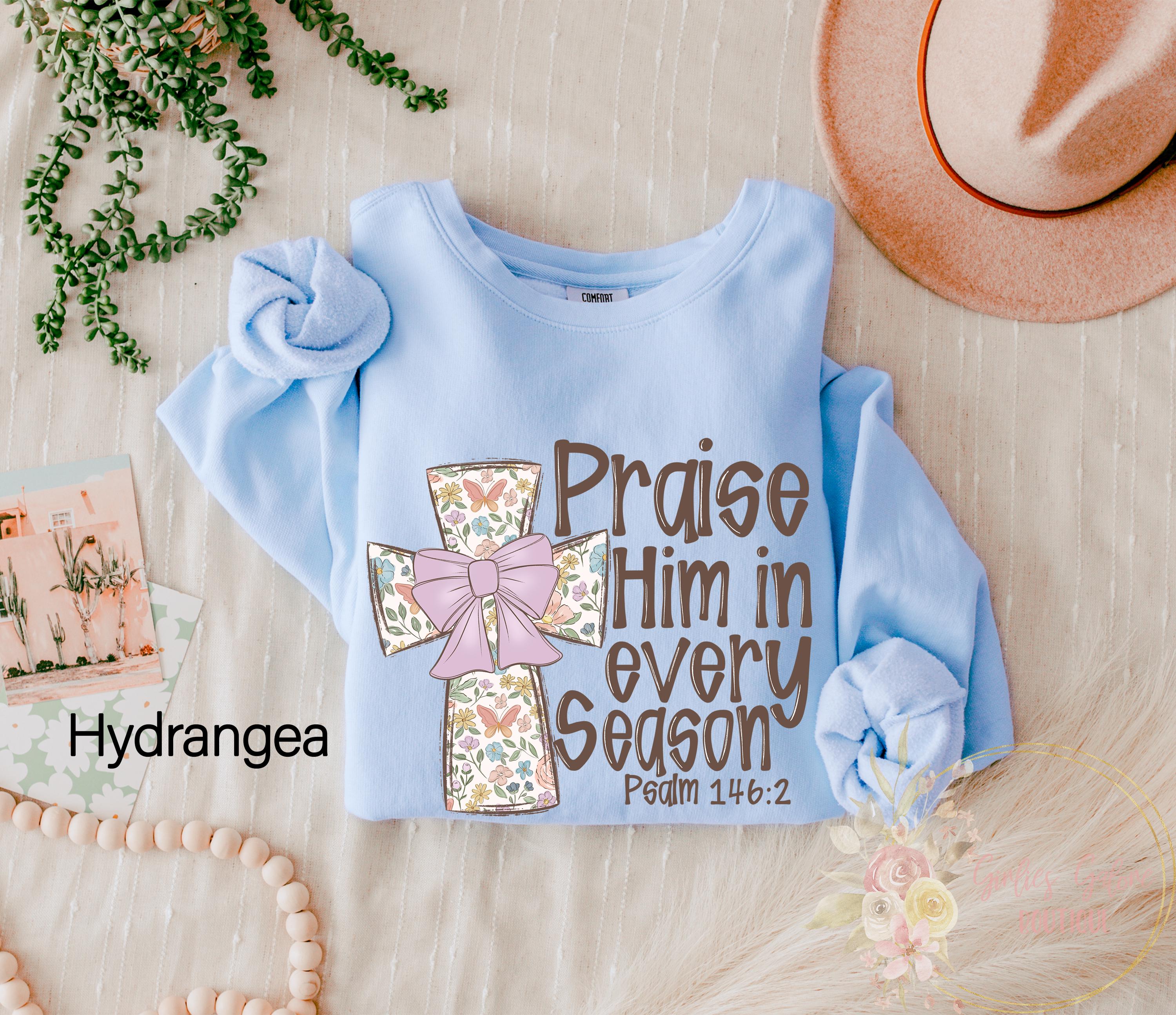 Comfort Colors® Praise Him In Every Season sweatshirt, Psalm 146:2 Bible Verse Shirt, Jesus Love, Christian Faith Gift, Religious Shirts