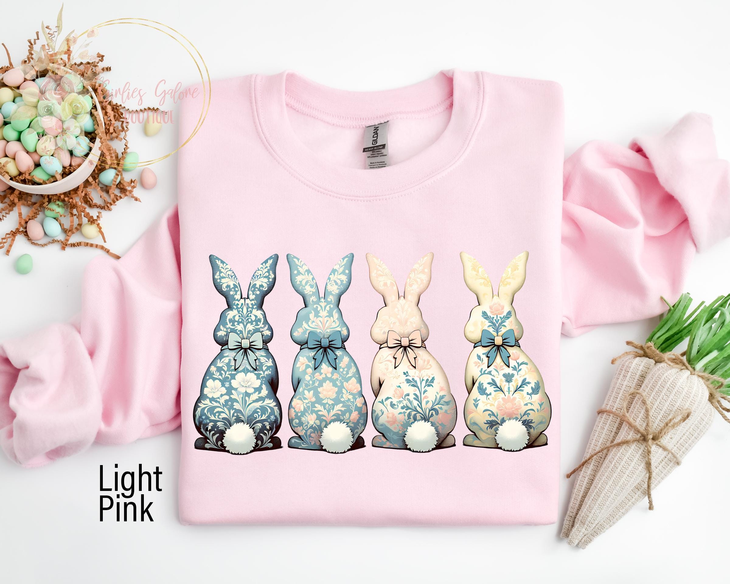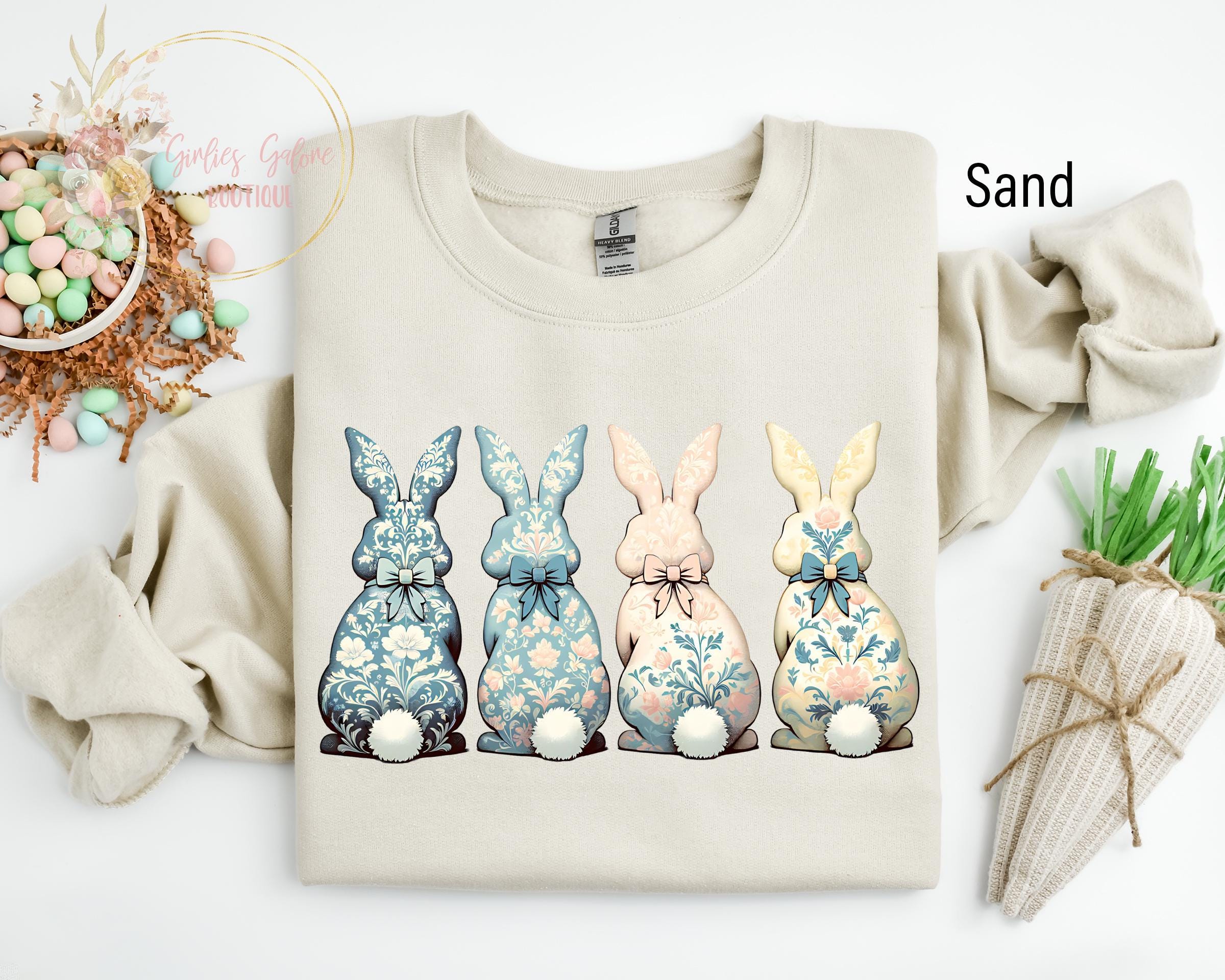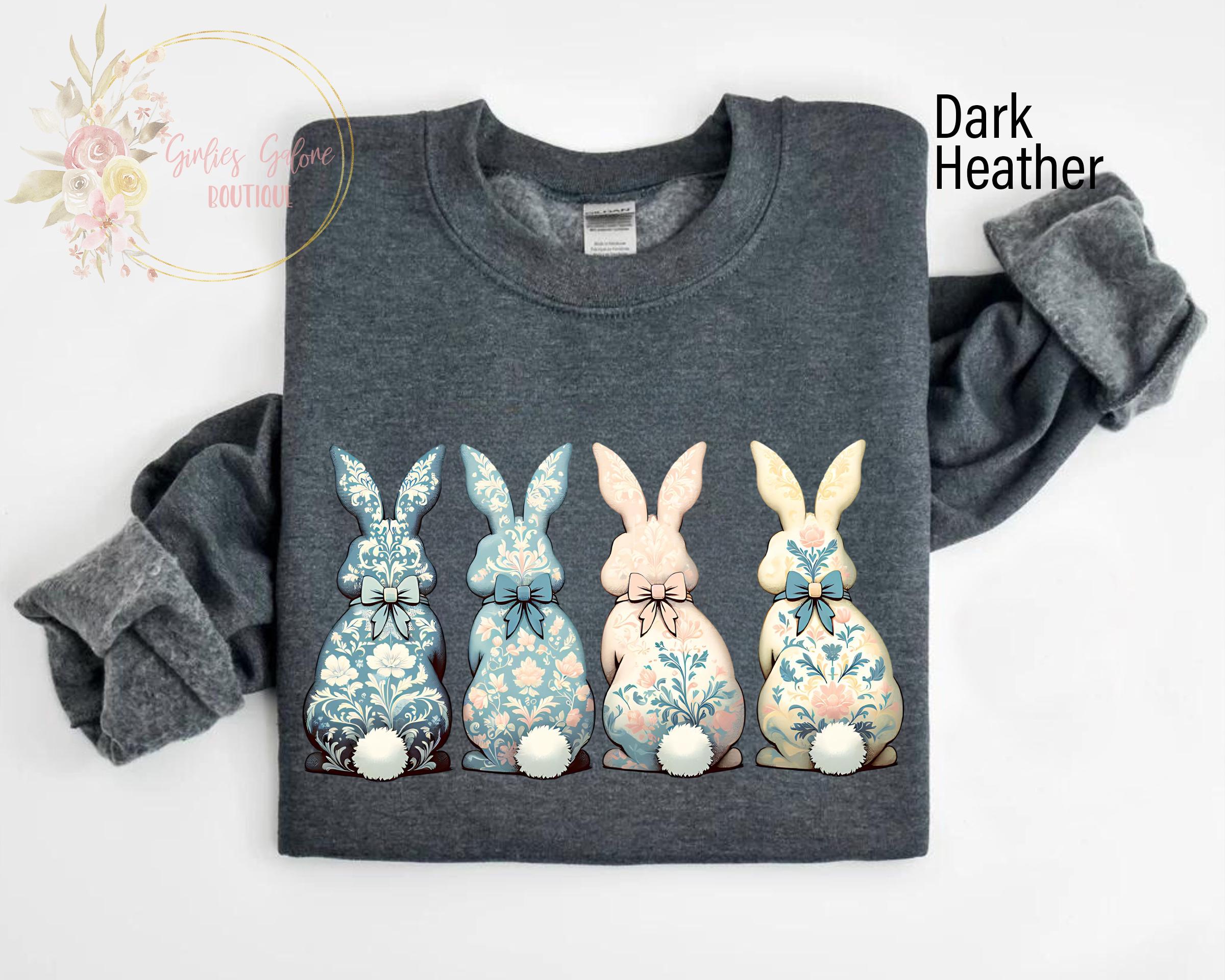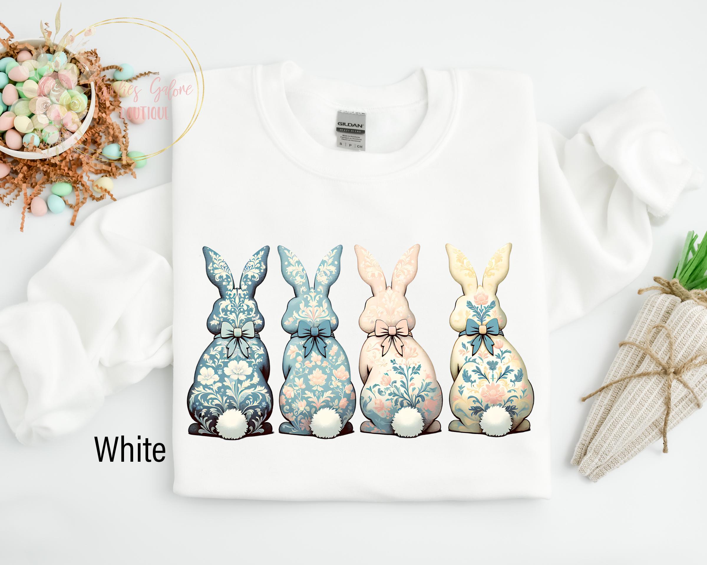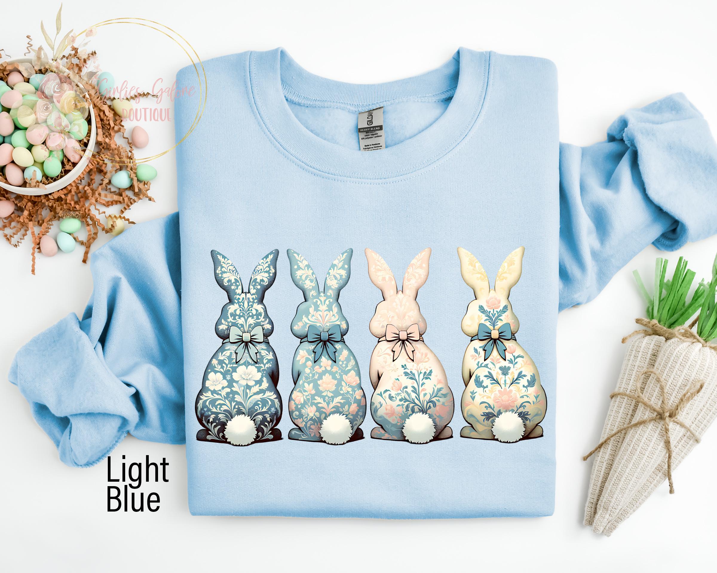 Floral Blue Bunny Sweatshirt, Cute Easter Bow Crewneck, Trendy Bunny Women's Sweater, Coquette Easter Bunny Sweatshirt, Gift for Her