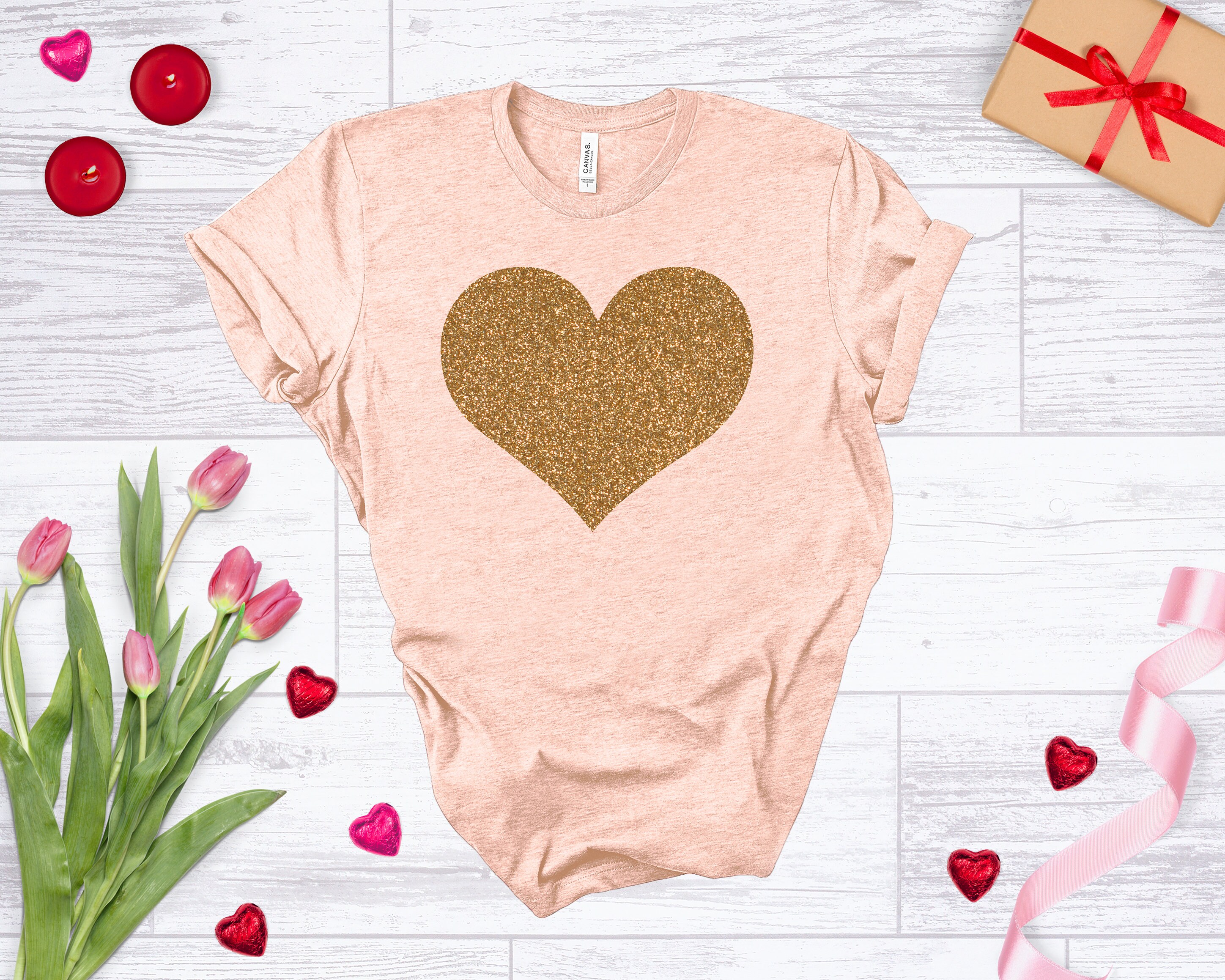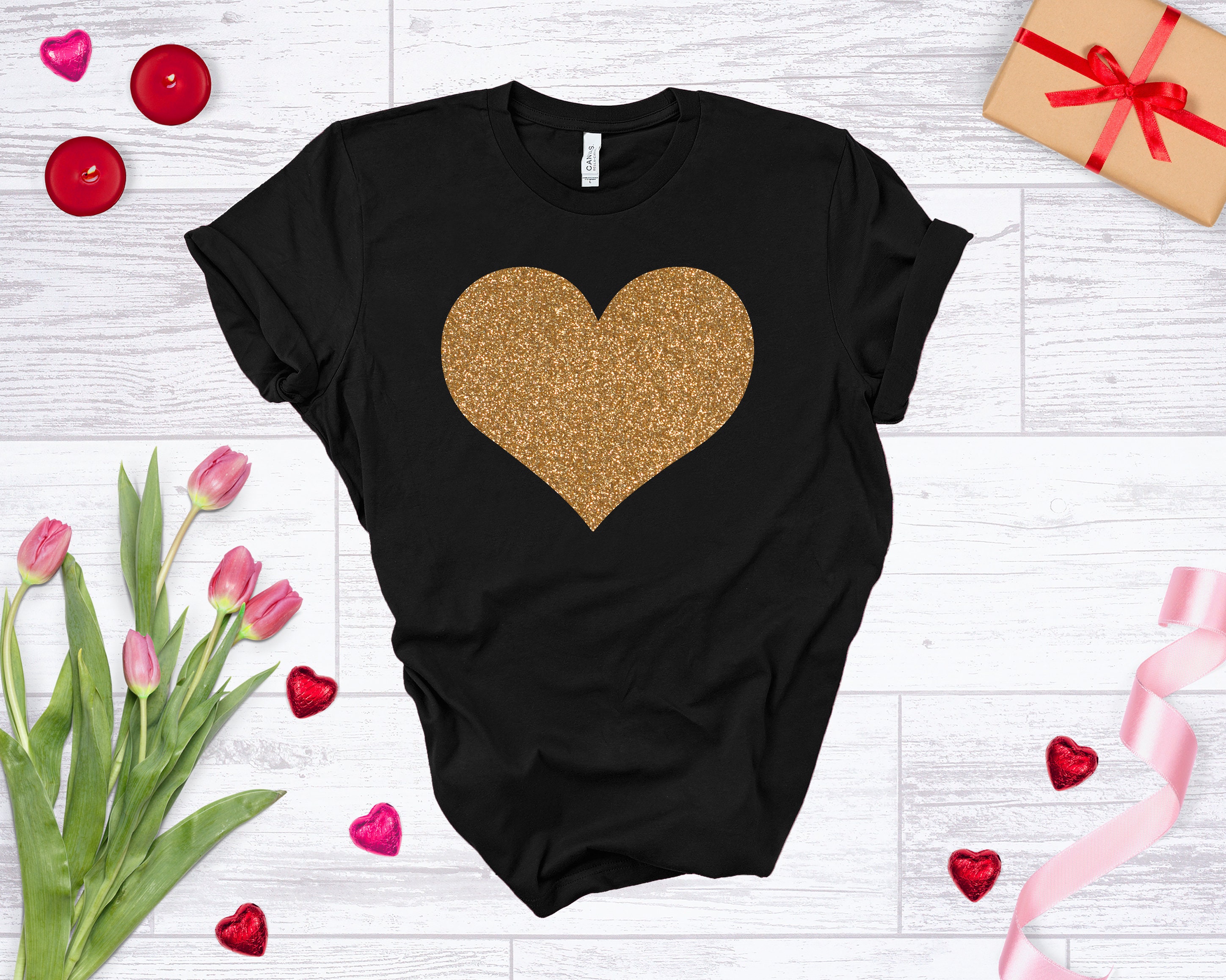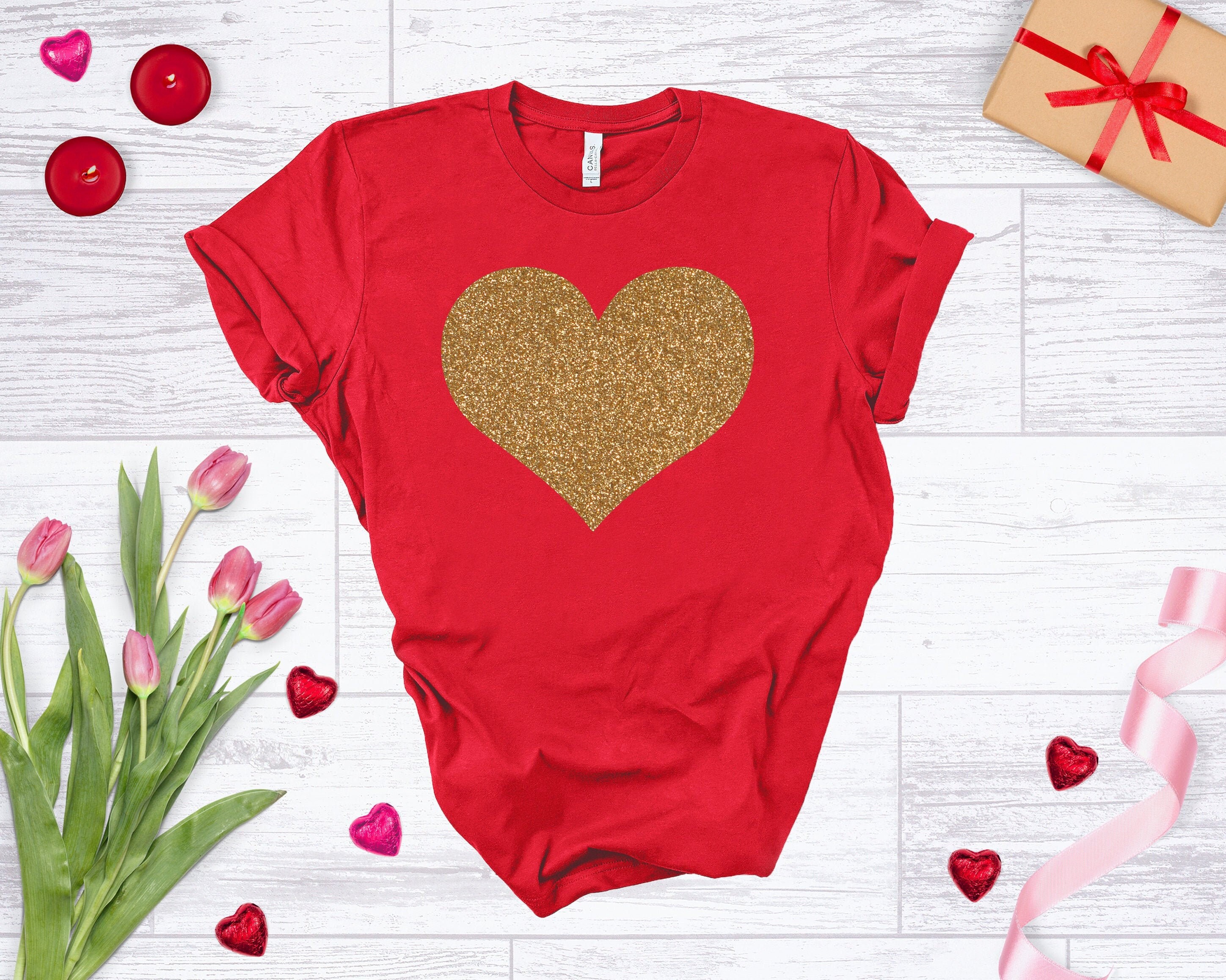 Ladies Valentines Day Shirt, Heart Shirt, Heart Valentine's Shirt, Glitter Shirt, Women's Valentines Day T-Shirt, Valentines Tee